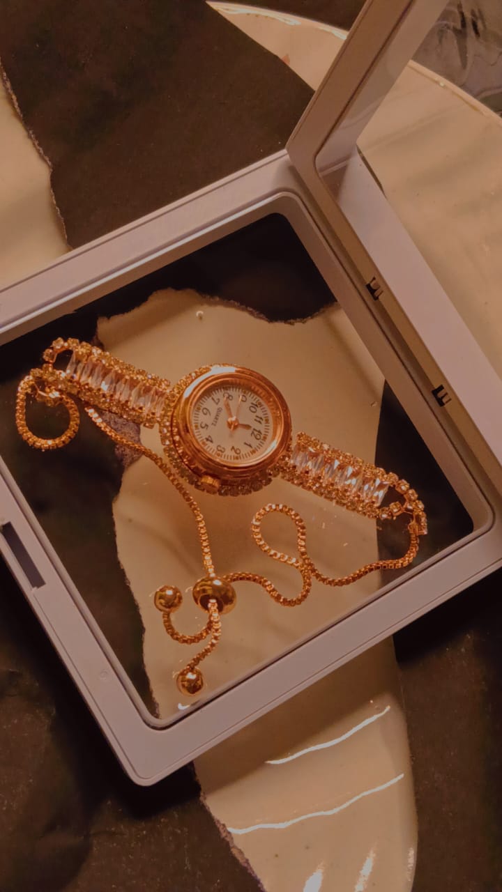 Each detail of the Eterna Luxe watch reflects fine craftsmanship and refined taste. The dial is delicately adorned with sparkling crystals that shimmer with every movement of your wrist, capturing light in the most mesmerizing way. The sleek metallic finish adds a touch of glamour, while the premium bracelet-style strap offers a seamless blend of comfort and elegance, perfect for both everyday wear and special occasions.