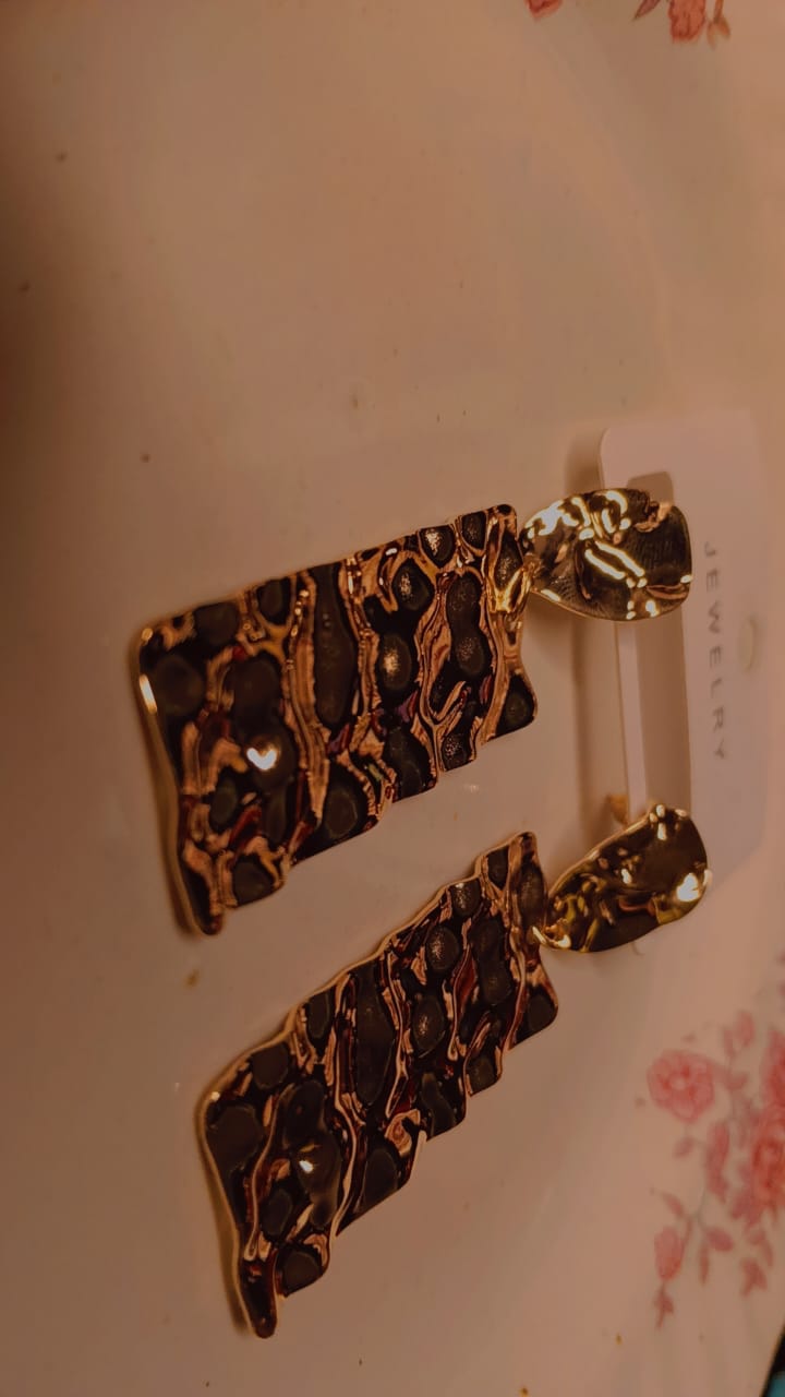 Add a touch of modern elegance to your look with these rectangle gold-toned earrings. Crafted with a sleek geometric design, they perfectly blend minimal style and sophistication. Made with anti-tarnish coating, these earrings retain their shine and finish even with regular wear- ideal for both casual outings and special occasions.